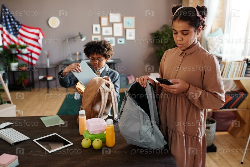 Брат и сестра готовятся к школе