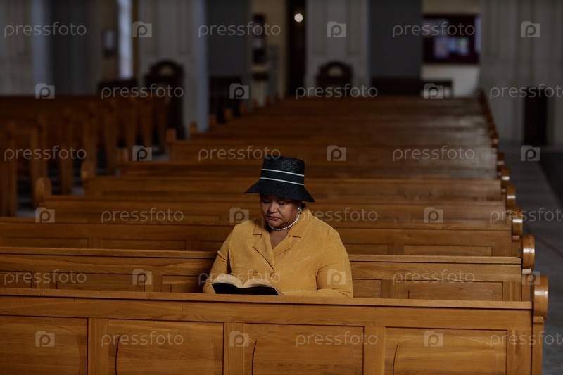 Элегантная женщина читает Библию в церкви