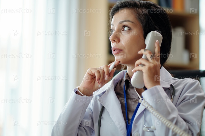 Женщина-врач отвечает на телефонный звонок