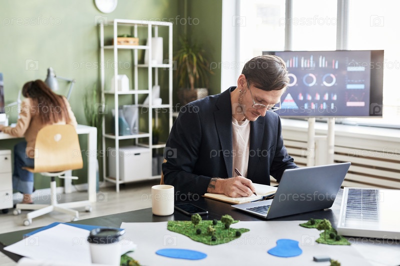 Инженер работает на своем рабочем месте в офисе