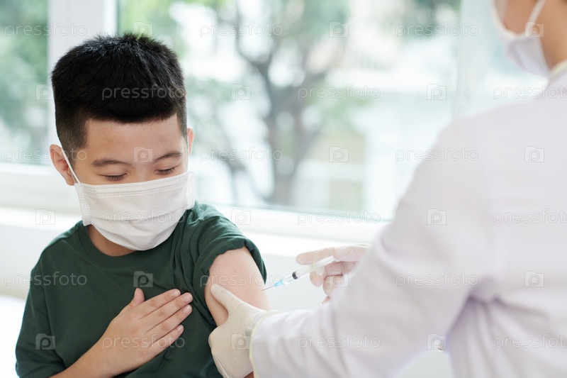 Ребенок получает прививку от коронавируса