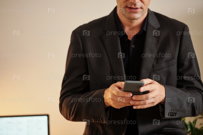 Бизнесмен проверяет уведомления на смартфоне
