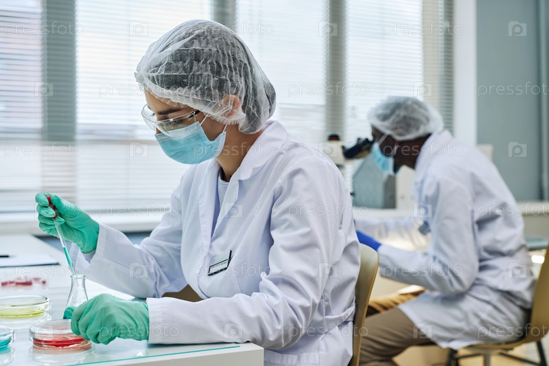 Учёная-женщина проводит эксперименты в лаборатории