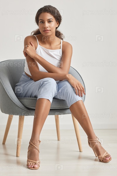 Современная чернокожая женщина позирует в кресле