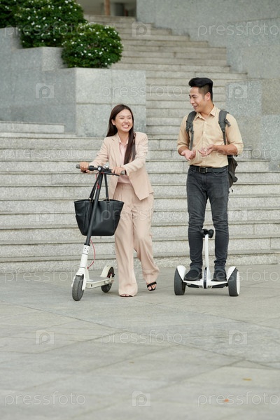 Коллеги ездят на электрических скутерах