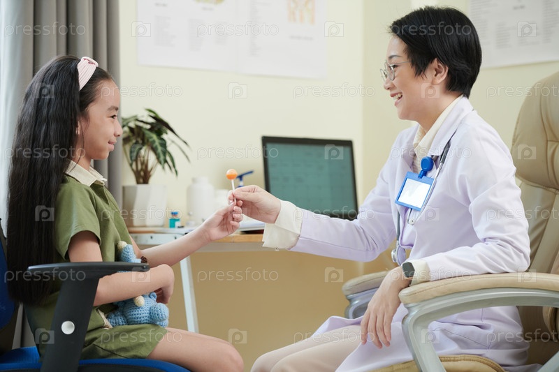 Доктор дает конфеты своему маленькому пациенту