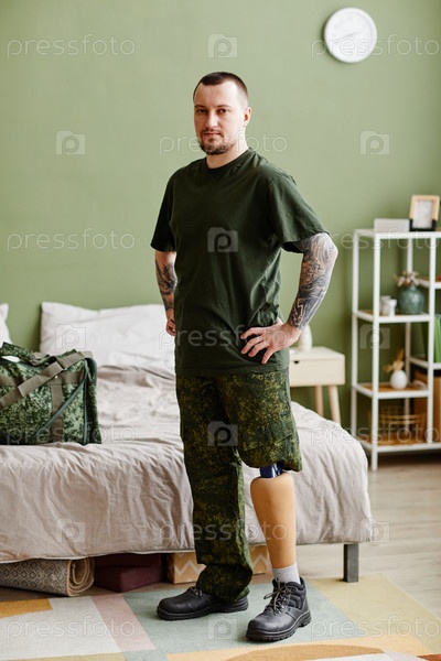 Ветеран с протезированной ногой, одетый в военную форму