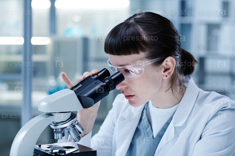 Женщина, изучающая вирус в лаборатории