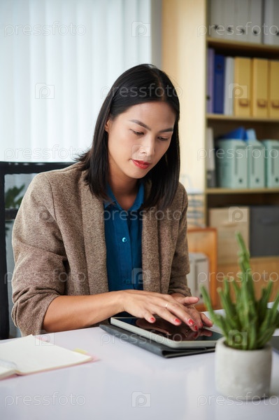 Предприниматель читает отчет на планшете