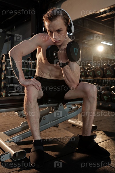 Человек, занимающийся упражнениями с гантельками