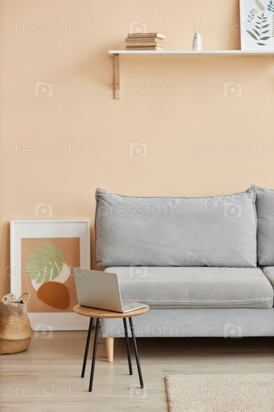Простой жилой фон с ноутбуком рядом с удобным диваном