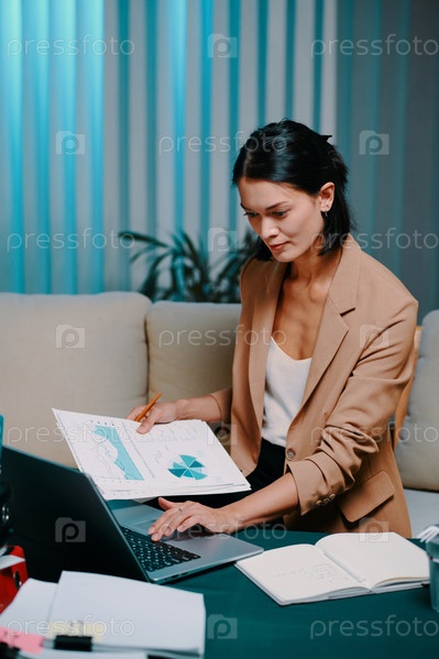 Деловая женщина, работающая над отчетами