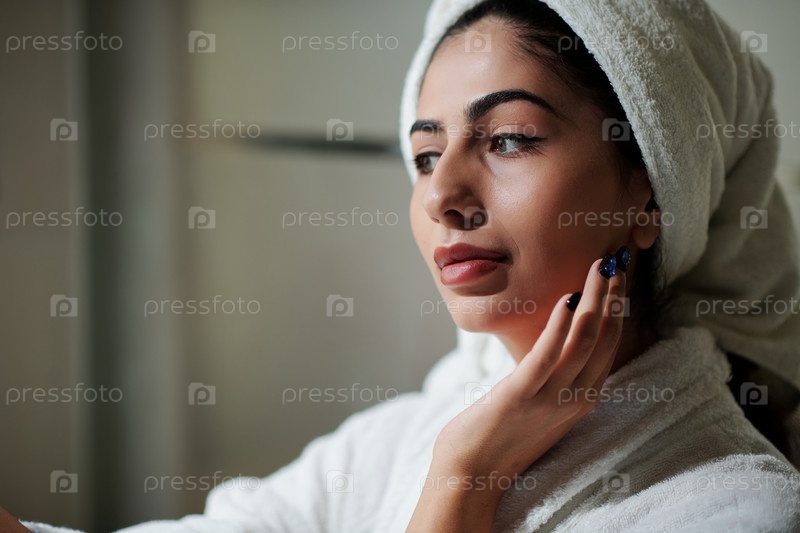 Молодая женщина наносит увлажняющий крем