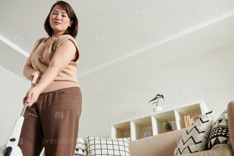 Женщина, убирающая пол в доме