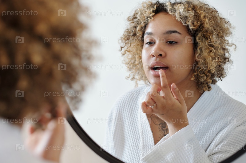 Афроамериканская женщина наносит питательный бальзам на губы