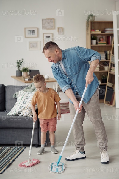 Отец занимается домашними делами вместе с сыном