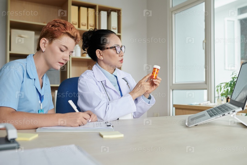 Врач, представляющий новое лекарство на онлайн-встрече