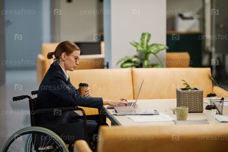 Пользователь инвалидной коляски в современном офисе
