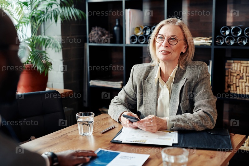 Деловая женщина, сидящая на встрече в ресторане