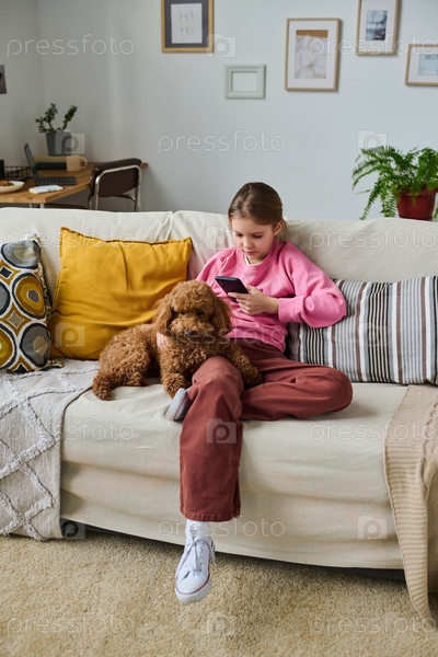 Девушка фотографирует свою собаку