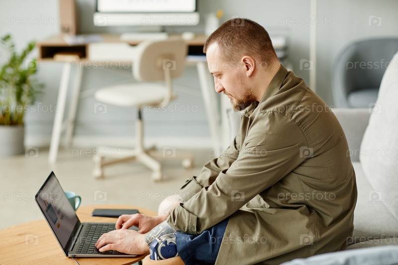 Мужчина с ограниченными возможностями, использующий ноутбук дома