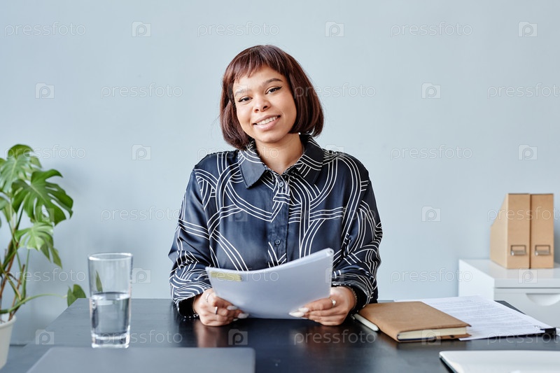 Улыбающаяся черная бизнесвумен минимум