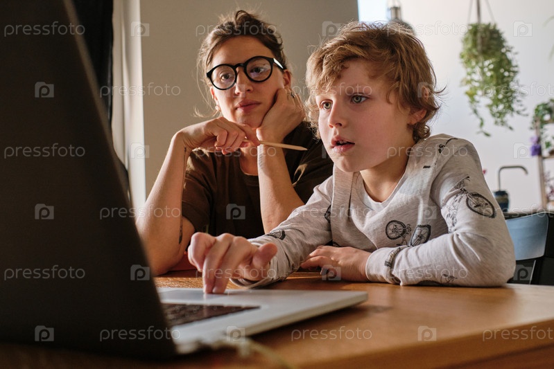Ребенок учится онлайн на ноутбуке