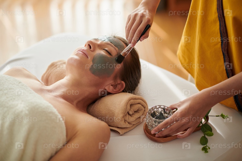 Женщина, получающая уход за лицом в спа-салоне