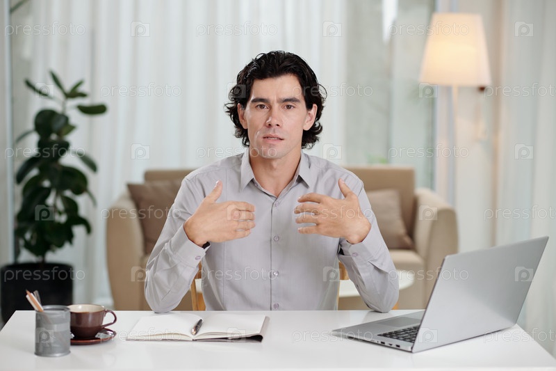 Бизнесмен выступает на онлайн-встрече