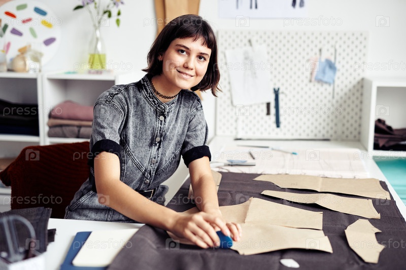 Швея, вырезающая детали одежды