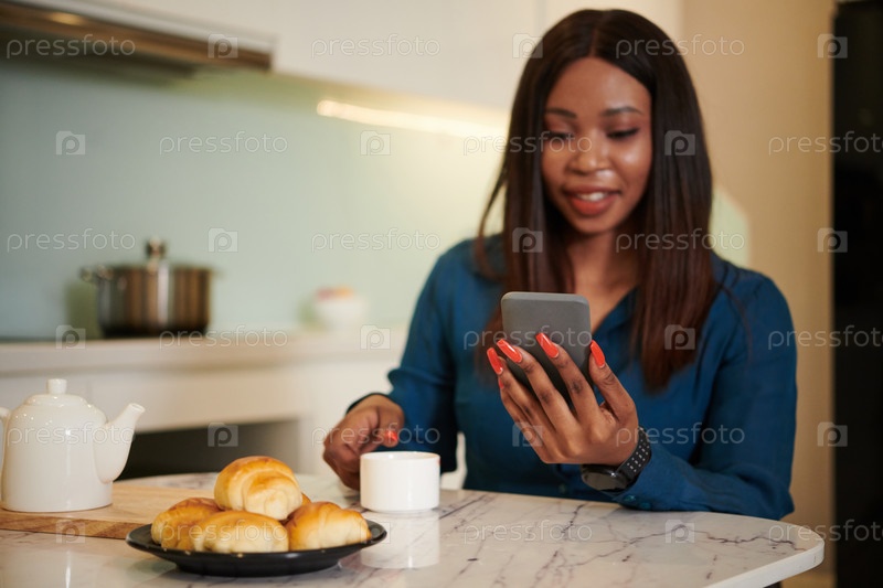 Деловая женщина пьет утренний кофе