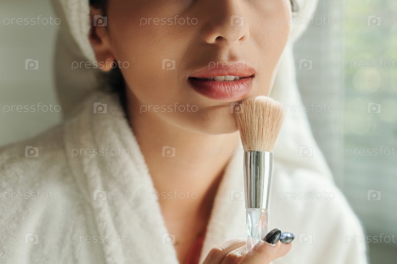 Женщина, наносящая порошок на подбородок