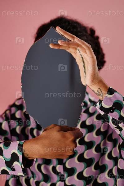 Непризнанная чернокожая женщина держит зеркало по лицу анонимный