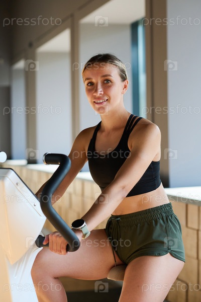 Женщина занимается кардиотренингом в спортзале