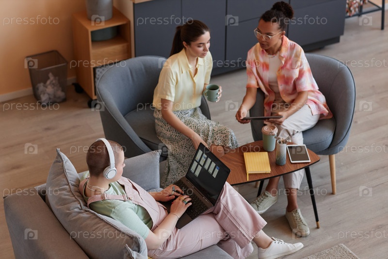 Молодые женщины, использующие устройства для встреч и совместной работы над ИТ-проектом