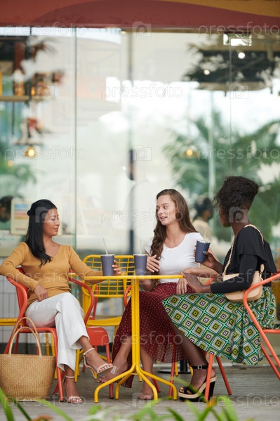 Друзья, беседующие за столом в кафе