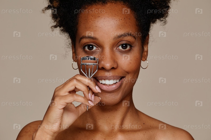Улыбающаяся чернокожая женщина кудрявые ресницы