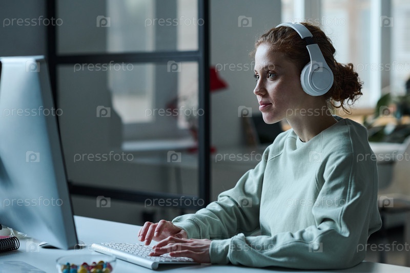 Женщина, работающая на компьютере в офисе ИТ