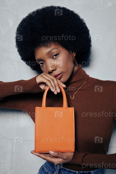 Модель-модель, демонстрирующая сумочку моды