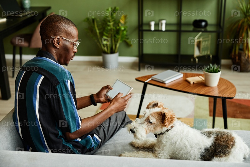 Чернокожий мужчина, использующий Smart Home System Modern