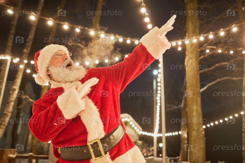 Санта Клаус танцует на улице Ночного города