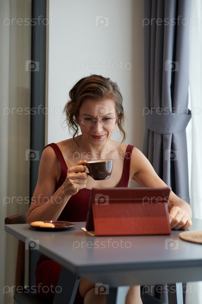 Элегантная женщина читает новости онлайн