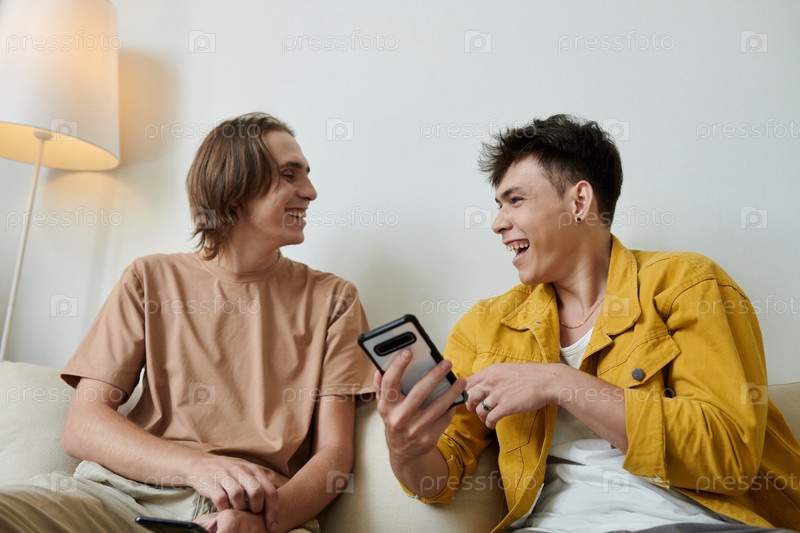 Мужчины смеются над счастливым мемом