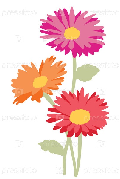 Рисунок букета декоративных абстрактных садовых ромашек