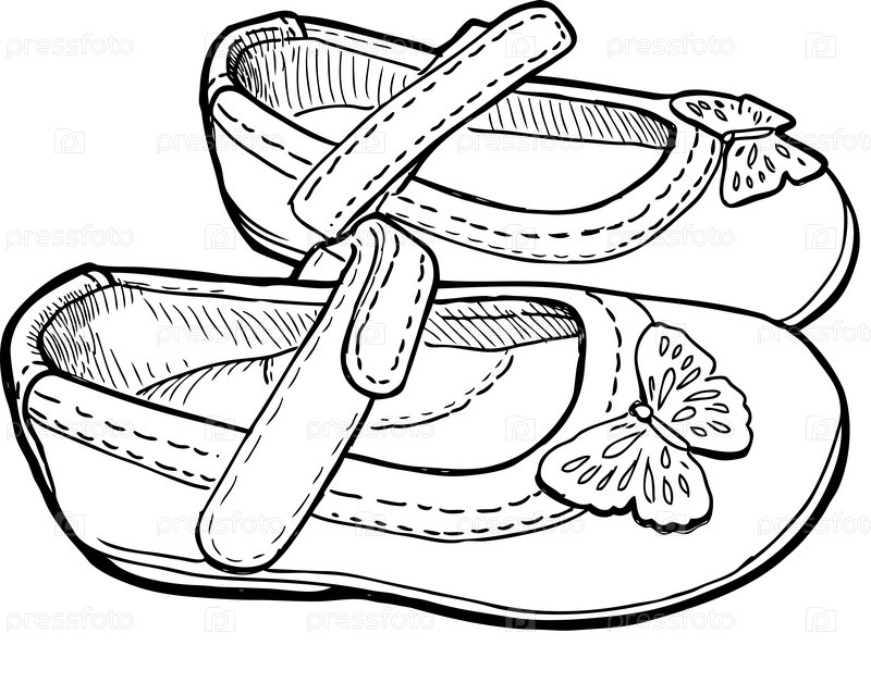 Контурный рисунок туфель для маленькой девочки