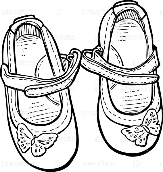 Контурный рисунок обуви вида сверху для маленькой девочки