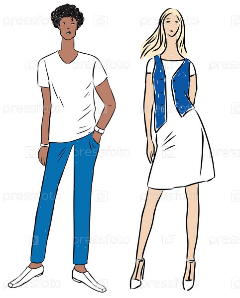 Векторный рисунок пары молодых людей в летней хлопковой одежде