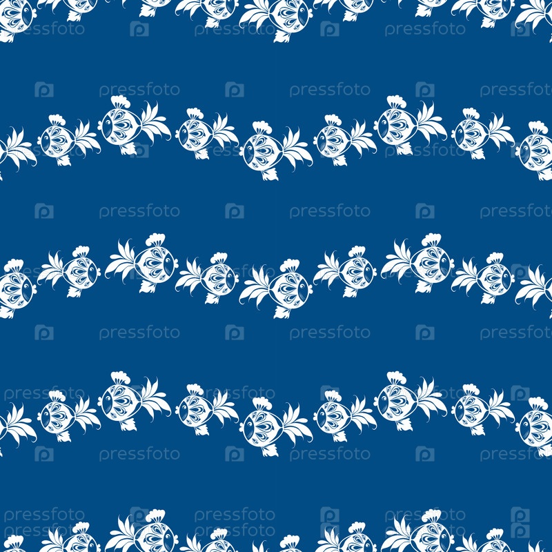 Бесшовный рисунок силуэтов декоративных плавающих рыб