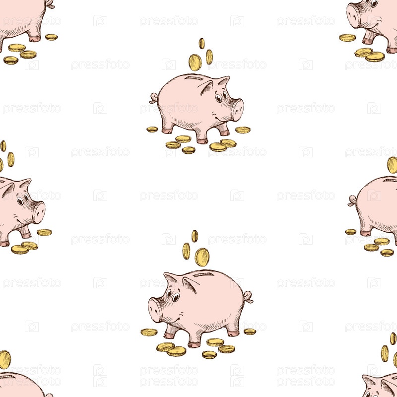 Бесшовный рисунок эскизов забавных копилок с монетами