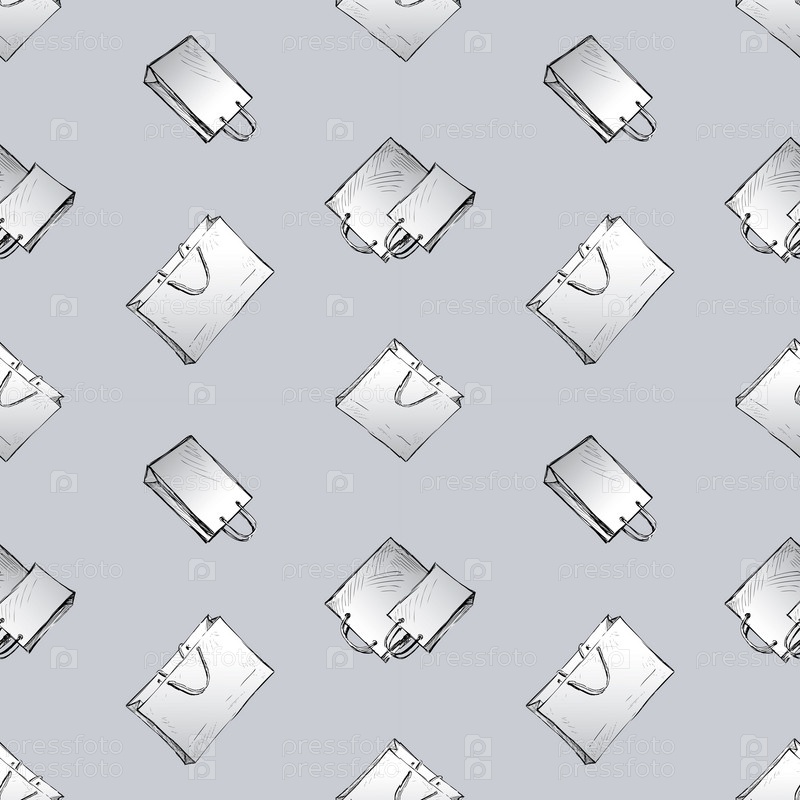 Бесшовный рисунок различных нарисованных сумок для покупок